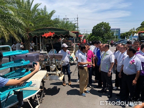▲農委會主委林聰賢授旗機耕協會以農機Uber平台改善和解決農友需求。(圖/記者楊熾興攝)