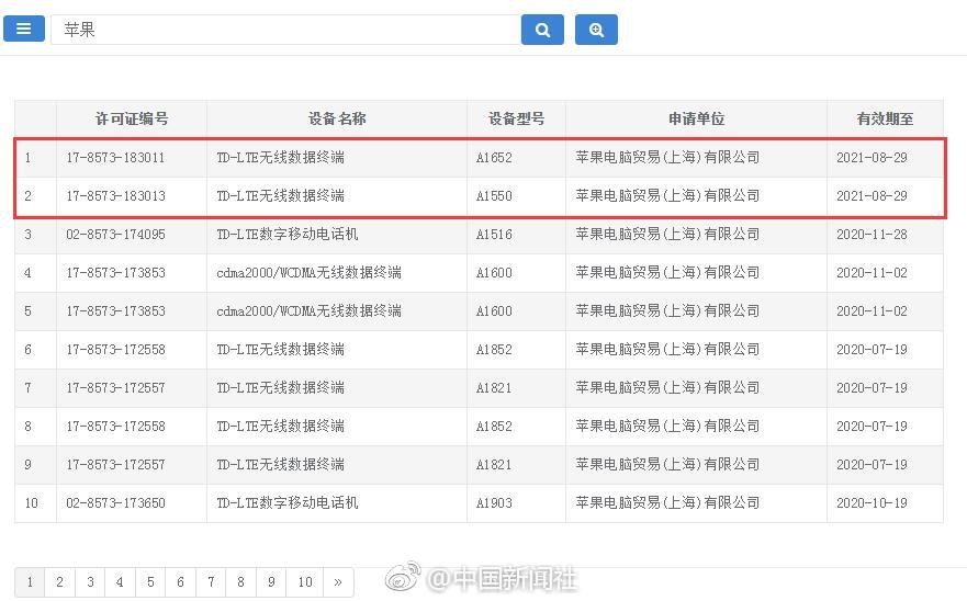 蘋果公司宣布將於9月12日舉辦2018年新品發布會,屆時將推出新款iPhone,消息一出,不少媒體、分析師紛紛猜測新機消息。中新社4日報導,工信部網站審批名單中,出現兩款型號為A1652及A1550的蘋果iPad產品,發證日期為2018年8月29日,但今年型號A1920、A1921的新款iPhone,目前工信部網站還沒有相關消息出現。