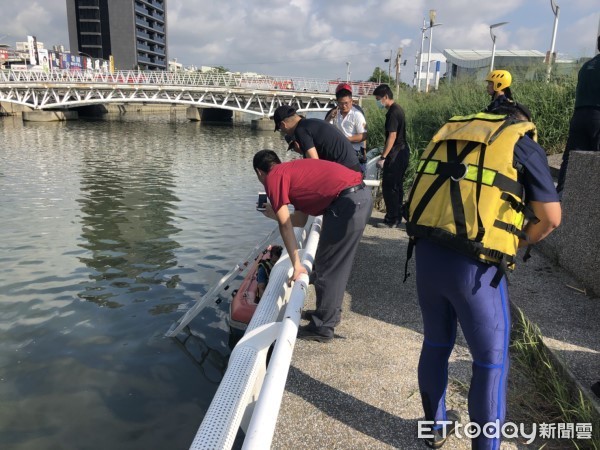 ▲高雄前鎮媽祖港橋有民眾落水。(圖/記者宋德威攝,下同)