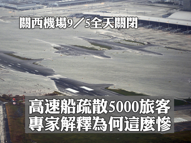 燕子颱風重創日本,關西國際機場因嚴重淹水,官方宣布今天(5日)整天關閉,並取消162個航班。為疏散受困機場的5000名旅客,3艘神戶高速船「Bay Shuttle 」今早幫忙疏運。天氣風險公司分析師吳聖宇也發文解釋,為何關西機場受災如此嚴重。《NHK》報導,目前已知造成9人死亡、340人受傷。