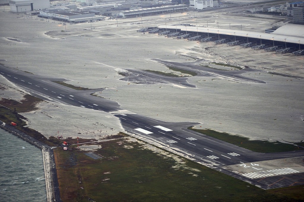 14:53:根據NHK報導,關西國際機場嚴重淹水,包含停機坪、空橋以及跑道全都泡在水裡,目前關西機場仍在調查具體受災情況,已掌握最新資訊。據悉,淹水的只有停機坪等地,航廈內並未有淹水情況出現。