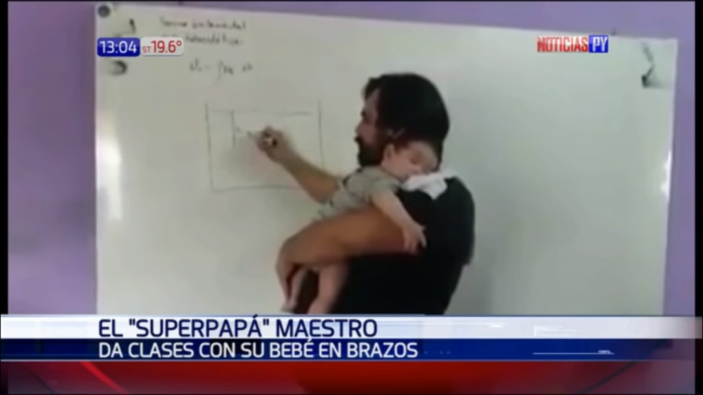 上班同時照顧小孩絕不是件容易的事,但他做到了!巴拉圭亞松森大學一名物理教師愛德華多(Eduardo González)被拍下感人的一幕,影片中的他正抱著5個月大的寶寶在課堂上一邊教課,引起了廣大網友的討論讚揚,表示也許爸爸平穩的教書聲,便是最好的搖籃曲。