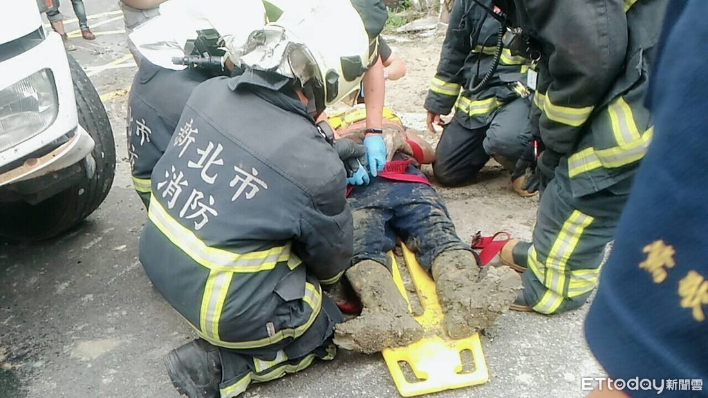 ▲污水處理工程塌陷,導致工人受傷,所幸無生命危險,以下同。(圖/記者陳雕文翻攝)