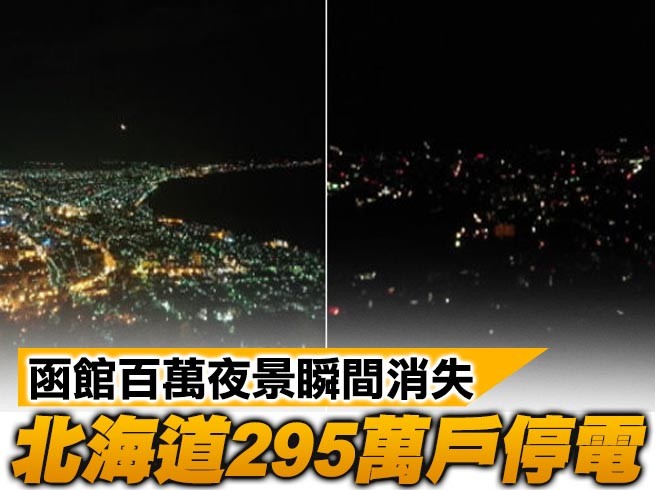 日本北海道南部在當地時間今天(6日)凌晨3時8分(台灣時間凌晨2時8分)發生芮氏規模6.7的淺層地震,最大震度達到「6強」,造成厚真町大規模山崩,有20人下落不明,目前已知北海道全境約有295萬戶停電。有網友貼出震前震後的世界三大夜景之一的「函館百萬夜景」對比圖,只見夜景瞬間消失成了漆黑一片。