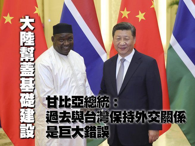 甘比亞總統巴羅(Adama Barrow)訪問北京參加中非合作論壇會議,6日與中國國家主席在北京人民大會堂會晤。巴羅表示,過去與台灣保持所謂「外交關係」是巨大錯誤,並感謝中國大陸改善當地基礎建設,未來將會「義無反顧地奉行一中政策」。