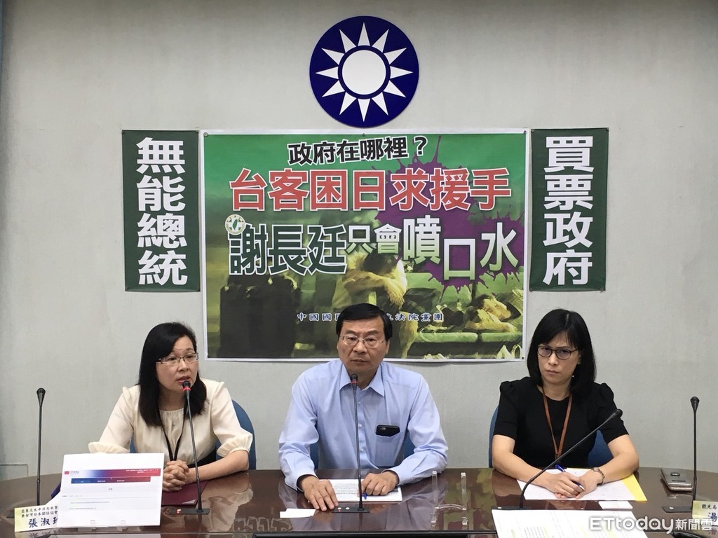 國民黨團7日上午召開「台客困日求援手 謝長廷只會噴口水」記者會,邀請外交部亞東及太平洋司參事兼台灣日本關係協會秘書長張淑玲和觀光局業務組副組長湯文琦出席。