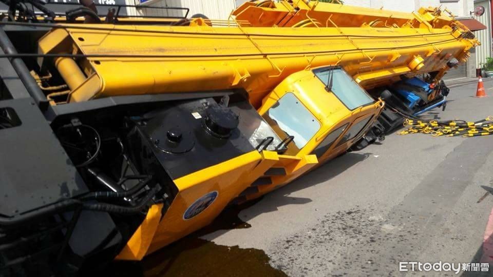 據警方了解,郭姓司機駕駛大吊車到工地吊掛箱涵,當他從新興路倒車要進入工地時,右側車體突然傾斜,整個右側車體陷入坑洞中郭姓司機說,這輛60噸大吊車可以吊掛100噸重量,由於操作儀器都設置在右側,這次意外又是右側凹陷,維修費恐費不貲。
