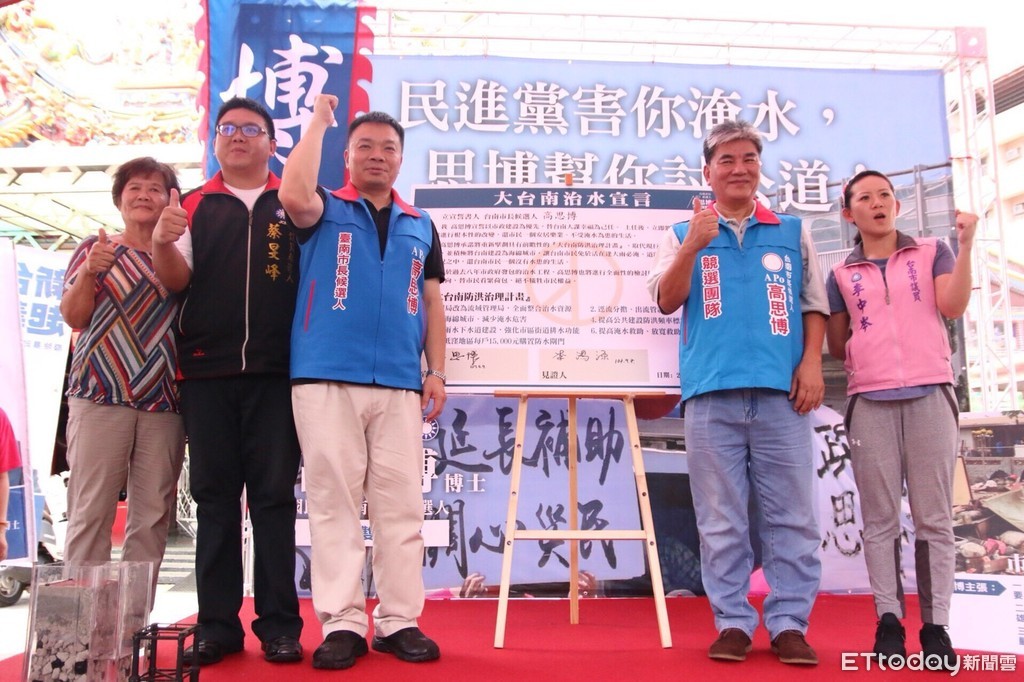 ▲國民黨台南巿長參選人高思博邀請治水專家李鴻源,在神明面前簽署「大台南治水宣言」,承諾將全面整治水資源,絶不再讓台南鄉親受淹水之苦。(圖/記者林悅翻攝,下同)