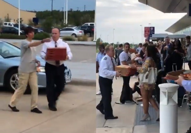 推特影片顯示,在外送員把披薩送到機場後,還穿著制服的雷恩斯不斷在外送車與受困乘客之間來回奔跑,親手分送披薩。在機場工作的瑞恩斯(Josh Raines)見狀立刻拍下眼前這一幕,直呼「我想我從沒見過這種事情。」