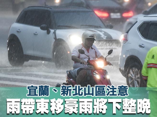 預報員吳依帆表示,新北市山區和宜蘭縣,隨著雨區東移的關係,發布豪雨特報,9日下午到晚上,都要防範強降雨,雖然雨勢沒有8日這麼大,仍不可大意。而雨區到了10日下午會轉往花東和恆春半島。