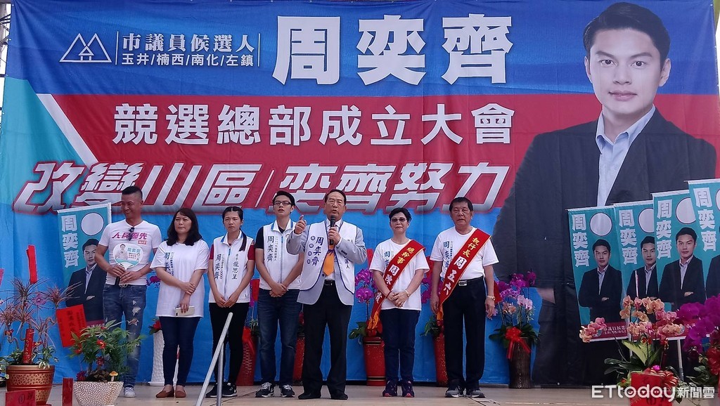 30歲年輕的周弈齊的父親周五六是前台南縣議長,母親周陳秀霞則是現任親民黨不分區立法委員,所以包括親民黨主席宋楚瑜、前立委張碩文都專程來幫周弈齊站台,強調山區有農路、老人、野溪整治..等相當多的問題,可以交棒給年輕人來打拼。