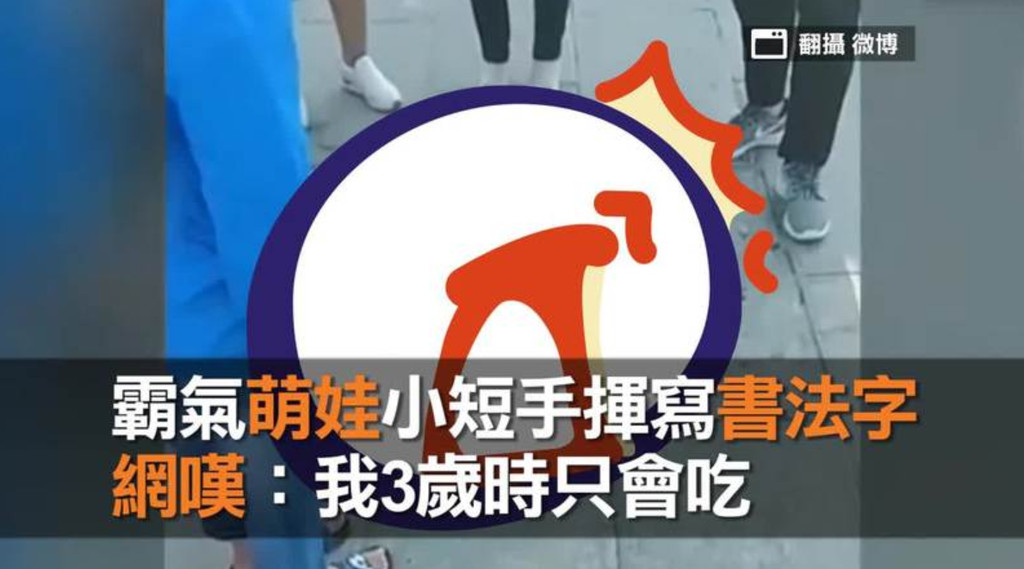▲▼3歲萌娃用水毛筆在地上練書法。(圖/翻攝自人民網微博)