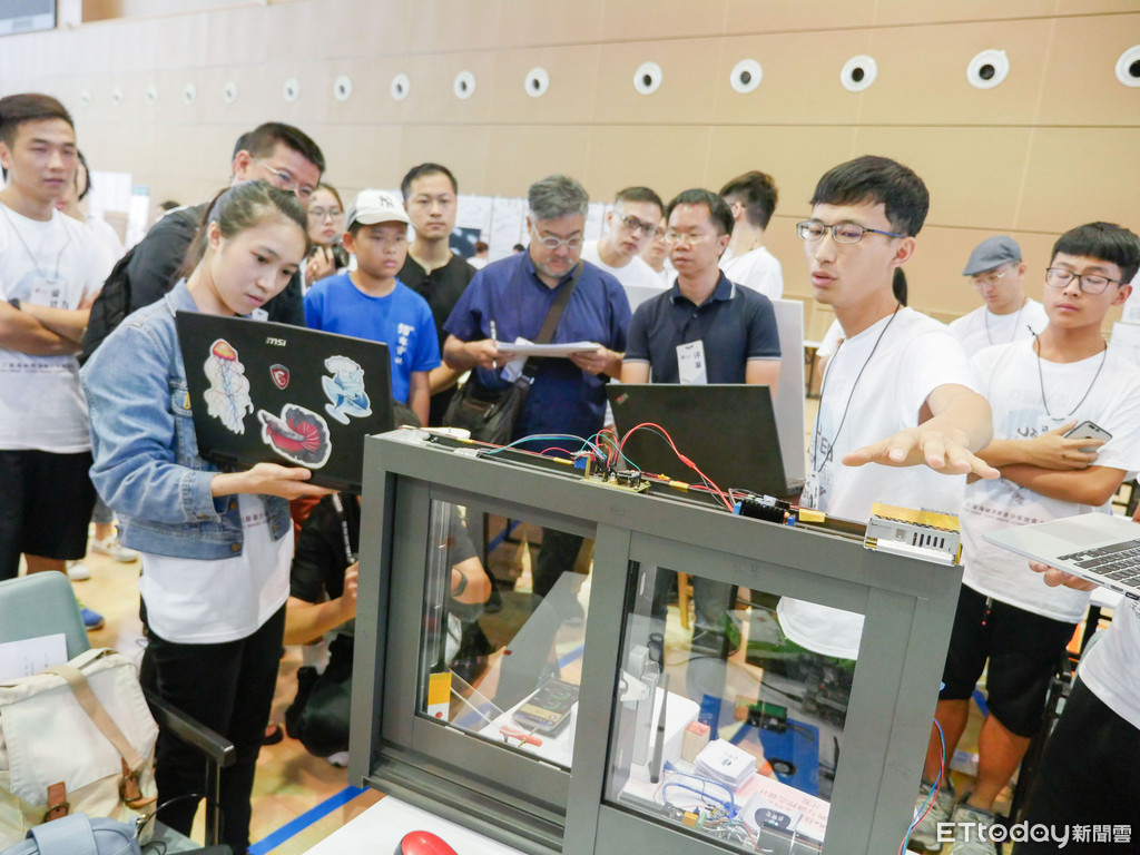 ▲由嘉義大學湯昀翔同學解說作品功能與展示。(圖/嘉義大學提供)