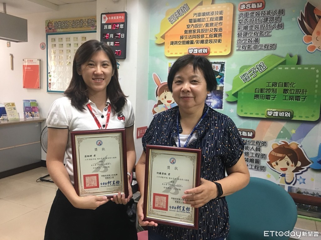 ▲雲嘉南分署永康就業中心莊貽婷、何蘇素秋,受到雲嘉南分署模範勞工表揚。(圖/記者林悅翻攝)