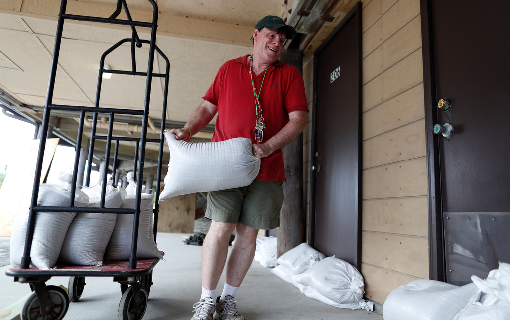 ▲美東面臨4級颶風「佛羅倫斯」威脅,南卡羅來納州居民堆沙包防災。(圖/路透社)