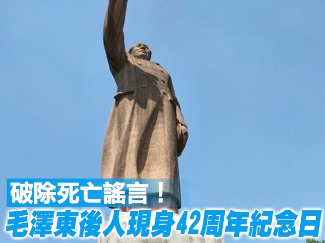 9月9日是中國共產黨創始人毛澤東的42周年忌日,毛澤東後代在當天前往北京的「毛主席紀念堂」悼念。根據曝光照片發現,前陣子瘋傳在北韓車禍中喪生的毛澤東長女李敏和嫡孫毛新宇也都到場,死亡謠言不言自破。