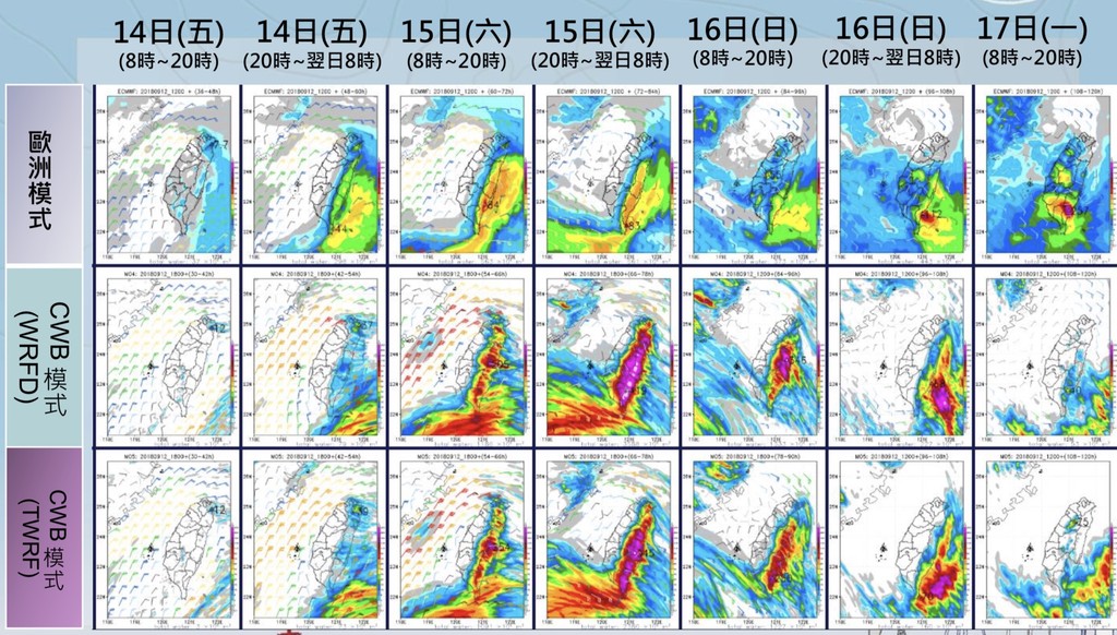 ▼山竹颱風9月14日至16日各地雨量初步預估。(圖/中央氣象局提供)