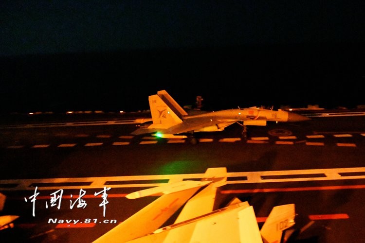 殲-15艦載戰鬥機近日在遼寧艦上舉行夜間起降訓練,數名飛行員於渤海灣某軍用機場對夜航技術恢復保持、夜間著艦等技戰術進行訓練。此次的演練也代表殲-15艦載戰鬥機已具備晝夜起降和綜合攻防能力。