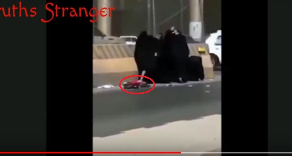 沙烏地阿拉伯首都利雅德(Riyadh)的街頭,近日被一名駕駛無意間拍下5名穿著黑色傳統罩袍蒙面女子在路上爭執爆打對方,更狠的是其中一名女子將手邊的小孩當成玩具摔在地上,後來小孩慢慢爬起來想要哭喊求救,又被她重摔一次在地。