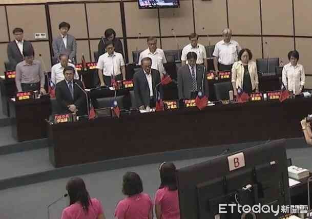 ▲台南市議員王家貞強烈譴責代理市長李孟諺,在議事廳為此銅像事件進行默哀時,竟臉半仰且微帶笑容。(圖/記者林悅翻攝)