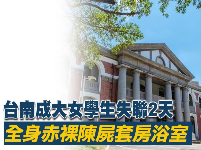 台南成功大學建築系2年級林姓女學生,13日晚間被發現全身赤裸陳屍在租住的套房浴室內,嚇壞同學和一起前往查看的同學,警方初步調查並未發現有外力侵入跡象,確切死亡原因仍待調查。