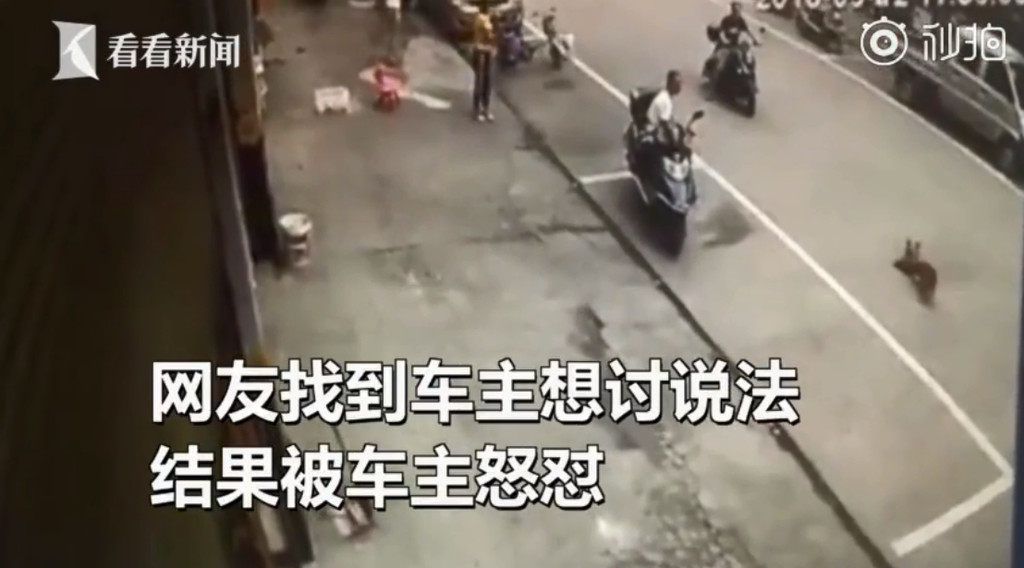 據了解,這隻小狗本來在店鋪前面玩耍,但從監視器畫面可以看到,牠是被撞倒在馬路上,顯示狗是因為沒拴狗繩,才不慎跑到大街上,因而被路過的車輾過,在路上痛苦打滾。