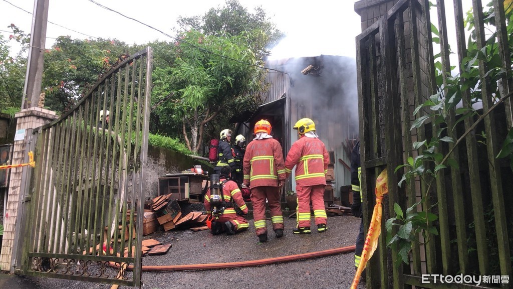 ▲汐止消防人員拉水線進入木材工廠搶救,火勢很快被控制住。(圖/記者趙永博攝)