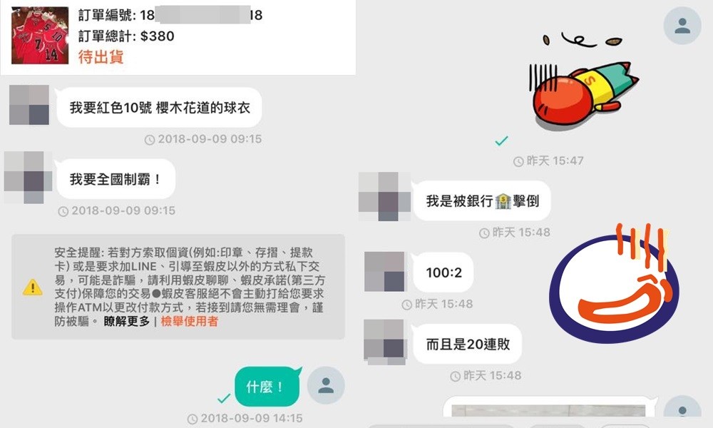 這位賣家在《爆料公社》貼出9張對話截圖,只見他賣的似乎是經典漫畫《灌籃高手》中主角隊的紅色球衣,一名買家便私訊他「我要紅色10號,櫻木花道的球衣」,還高喊「我要全國制霸!」網友看到後便回應「什麼!如此豪語」「那您要下單才能制霸呀!櫻木桑。」