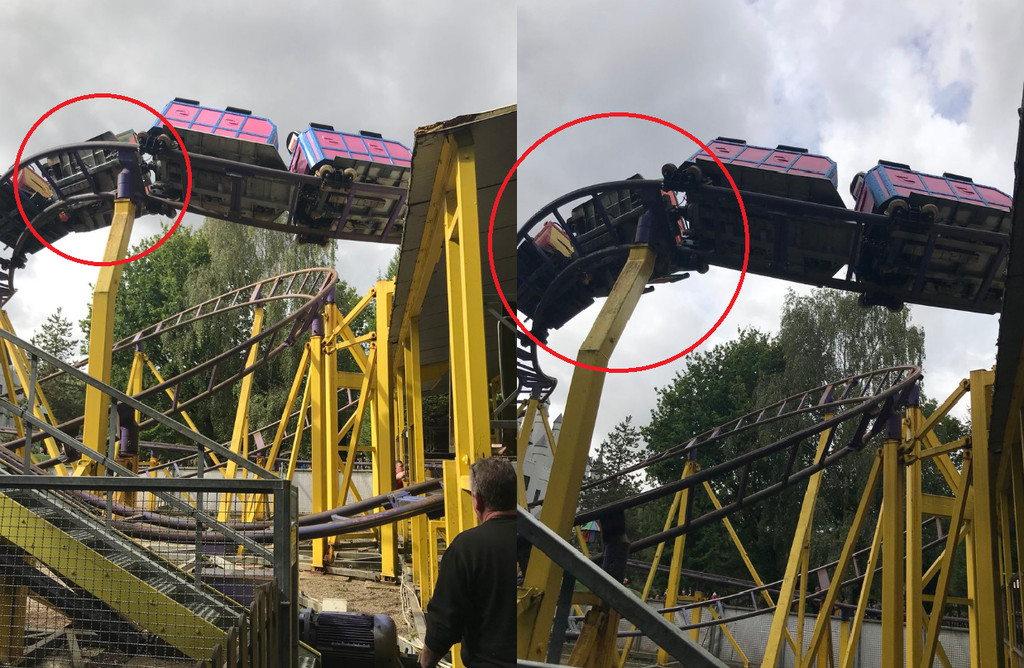 根據外媒報導,英國當地時間15日下午約1點10分左右,一輛雲霄飛車正在行進時,其中一節車廂的兩個輪子突然掉落,造成車廂脫軌,整輛雲霄飛車就這樣卡在高達15公尺的軌道上,車上21名兒童都受到極大的驚嚇。