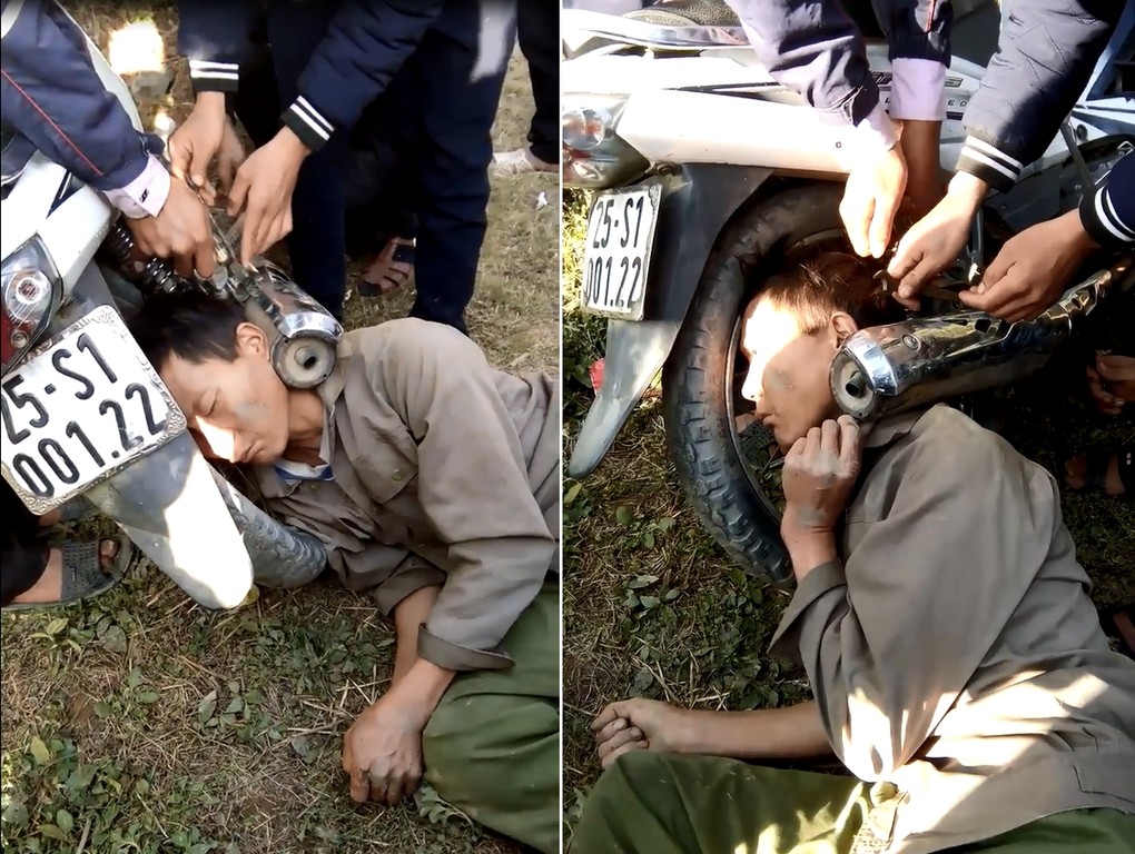 「嗯!?我怎麼在這?」越南萊州省一名男子某天晚上喝了不少酒,實在太醉就乾脆靠在機車上睡覺,只是越睡越傾斜,最後以奇怪的姿勢卡在排煙管與輪胎中間,但他也不管繼續沉睡,直到隔天被村民叫醒,才驚覺脖子已痛到不行。