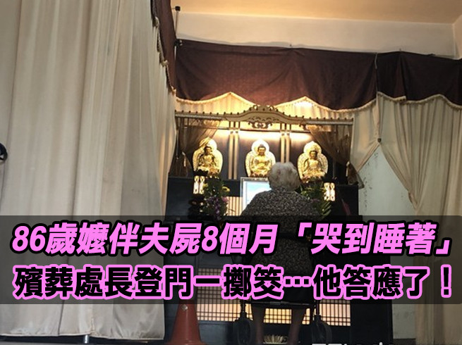 心急的阿嬤每天伴著先生遺體哭,哭到睡著再爬起來,儘管鄰居同情,但因為衛生和一些忌諱,引起關注。
