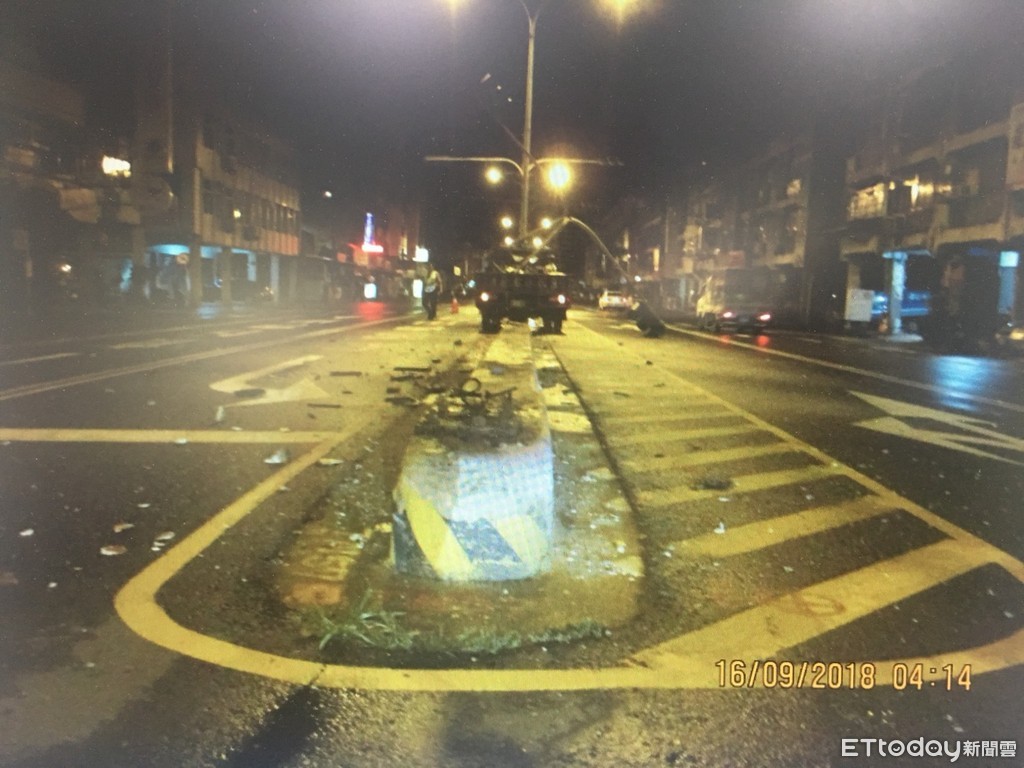 ▲63歲雷姓男子,涉嫌酒後駕車失控自撞中央分隔島,致車毀人傷。(圖/記者林悅翻攝,下同)