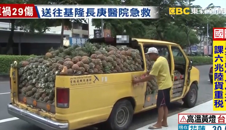《東森新聞》報導,該鳳梨攤商每日清晨都要到名間鄉大庄村批發鳳梨,再開車到中彰投等地販賣,因為價錢便宜、車子和老闆身上的T恤都是鮮豔的黃色,外加上鳳梨隨車沿途飄散果香,總能吸引顧客上門。