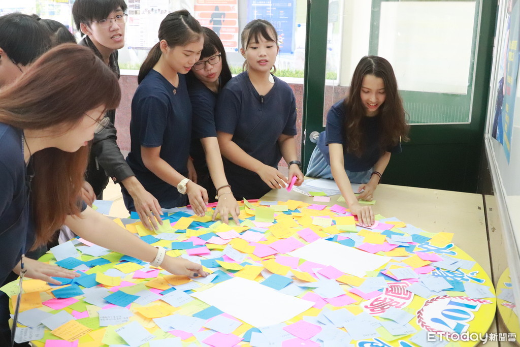▲中華醫大新生將寫滿大學四年的夢想貼在圓夢板上。