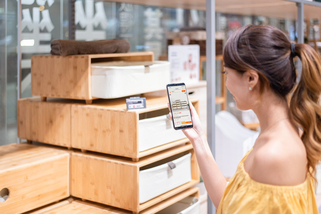 而店內導入數位貨架,在每個情境空間中都會有一個平板螢幕,方便消費者體驗完實體氛圍或確認產品之後,能夠從電腦上查詢產品資訊、下單或購物,螢幕上會依照選購商品,提供運費資訊,而貨運與組合服務則與特力和樂物流系統整合提供。