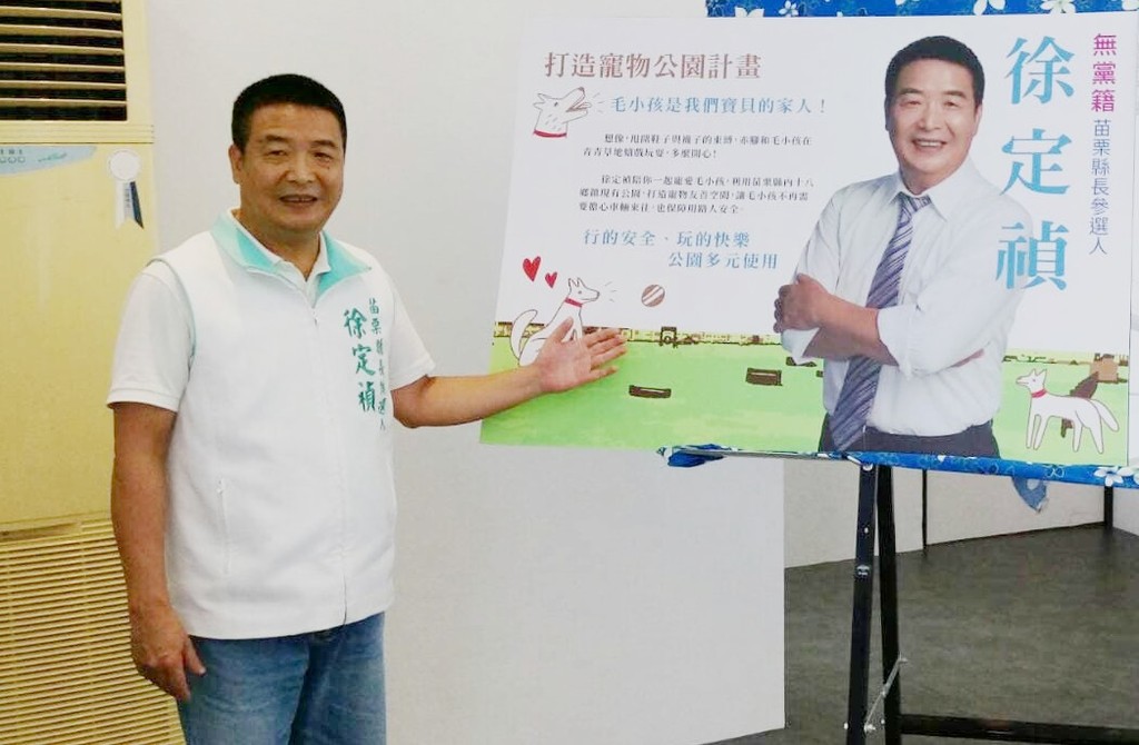至於寵物友善環境的規劃,徐定禎計劃利用苗栗縣內十八鄉鎮現有公園,打造寵物友善空間,讓居民不用帶寵物在車流量大的馬路上奔跑,不必擔心神出鬼沒的來往車輛傷了毛小孩,用路人及駕駛人也不用擔心不小心傷到毛小孩,讓寵物和用路人都可以更加安全。