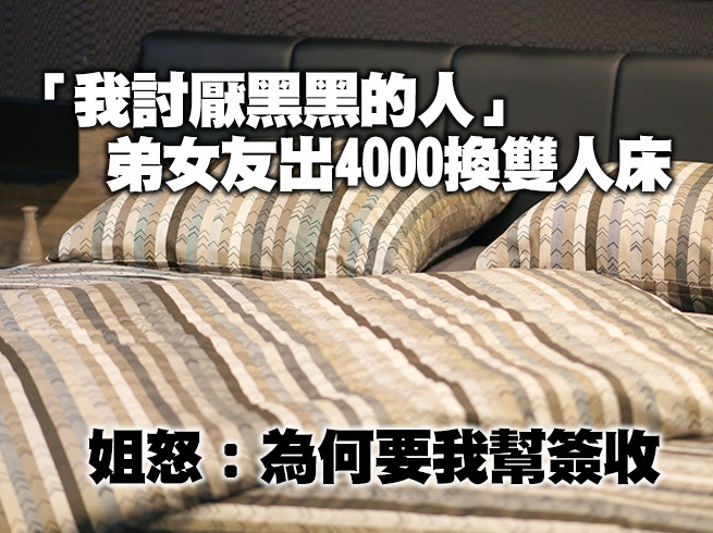 一名女網友抱怨,弟弟的女友有時住家裡,要求把單人床換成雙人床,「為什麼我要幫他簽收?就算我是姐姐,也沒必要幫他簽收吧。」她之前也抱怨弟弟女友,「我討厭黑黑的人…家有家規,而我…就是家規,我媽說的,以我為主。」此文引發網友討論。