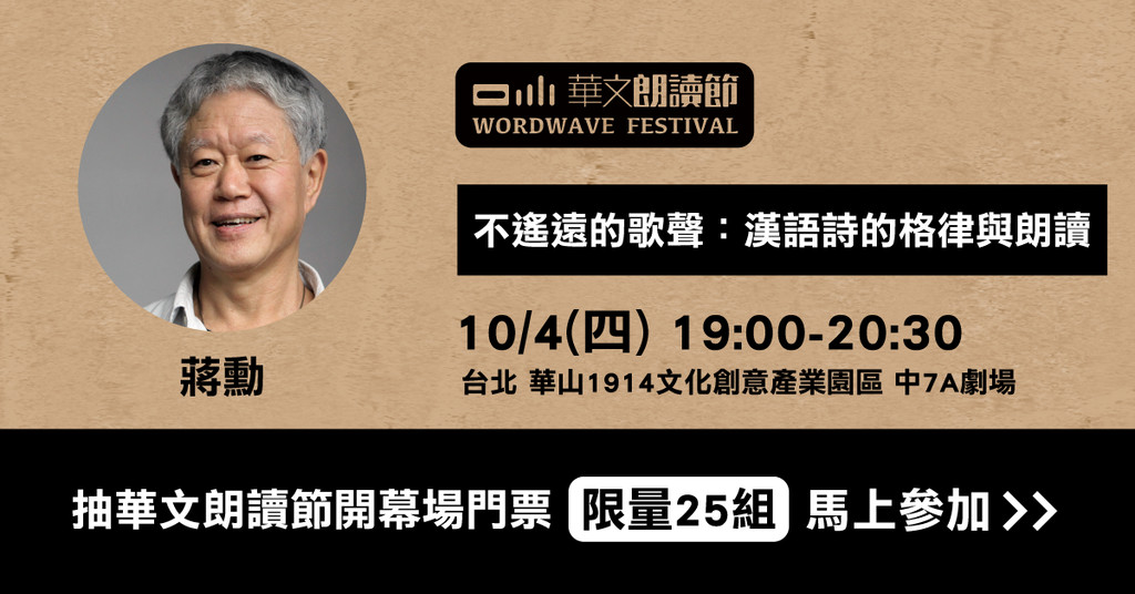 ● 下載App限量抽《華文朗讀節_台北開幕場》與美學大師蔣勳一起朗讀詩句 ►►►