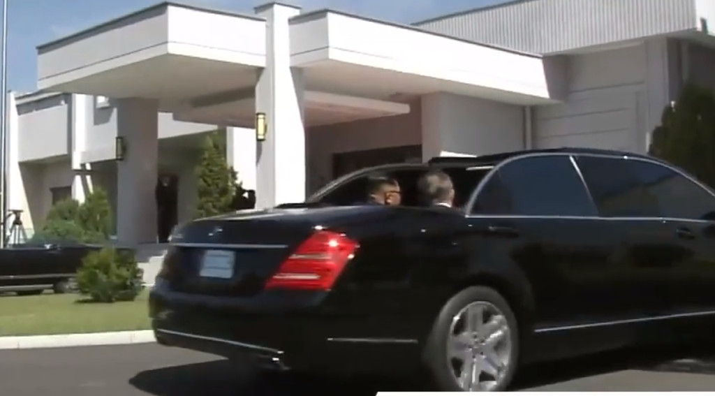 除此之外,當遊行隊伍抵達百花園迎賓館時,金正恩也先行從左後方下車,繞過車輛後方來到文在寅所在的右後方車門前「迎接」文在寅下車,兩人下車後,跟隨在後的金正淑與李雪主所搭乘的座車也抵達百花園迎賓館門口。南韓前總統金大中2000年初訪北韓時,同樣也是與時任北韓領導人金正日搭乘防彈賓士一同前往百花園,當時北韓國防委員長金正日也曾將司機斜後方的「尊位」禮讓給南韓前總統金大中。