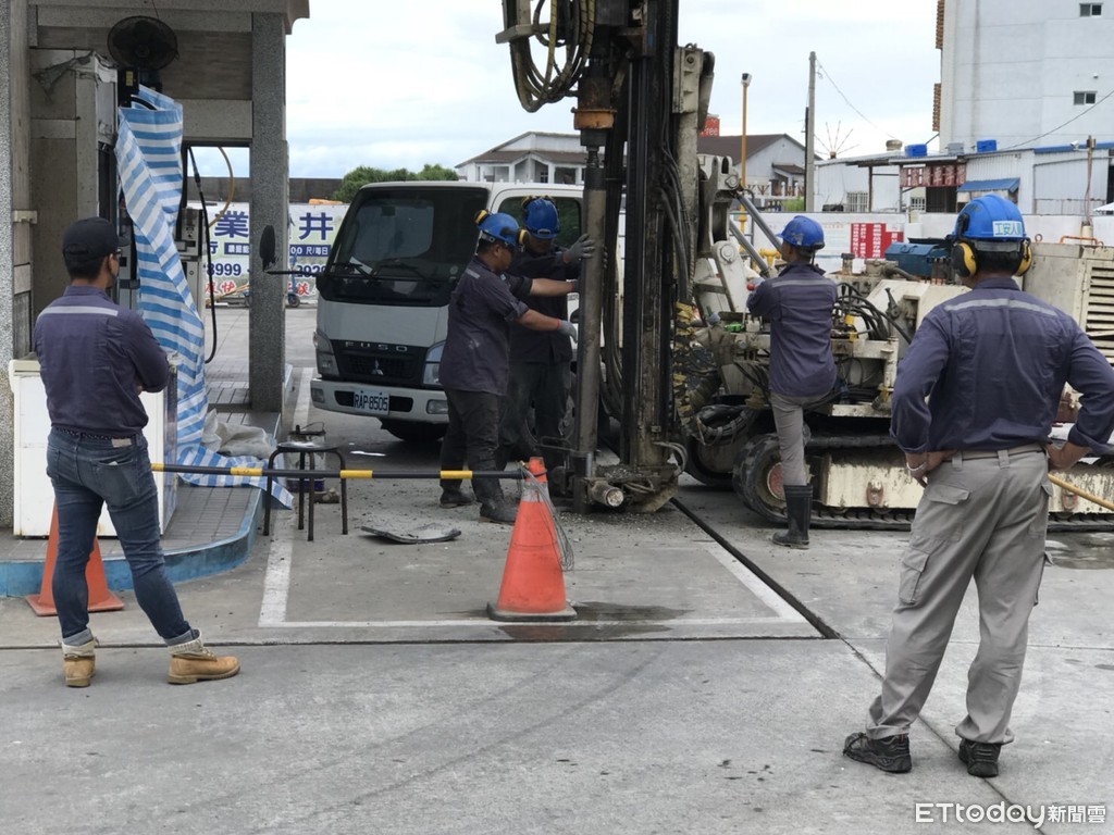 ▲▲中油公司綠島加油站7月間驚傳油管漏油3700公升,台東環保局派員採樣送檢。(圖/台東縣政府提供)