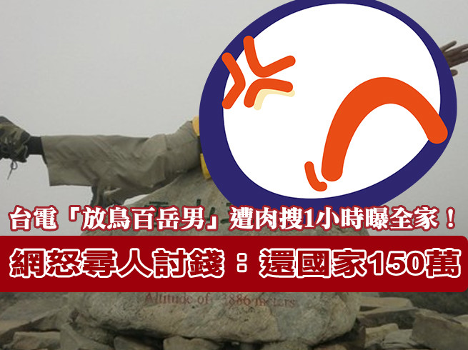 ▲台電「放鳥百岳男」遭肉搜1小時曝全家!網怒討錢:還國家150萬。(圖/翻攝臉書)