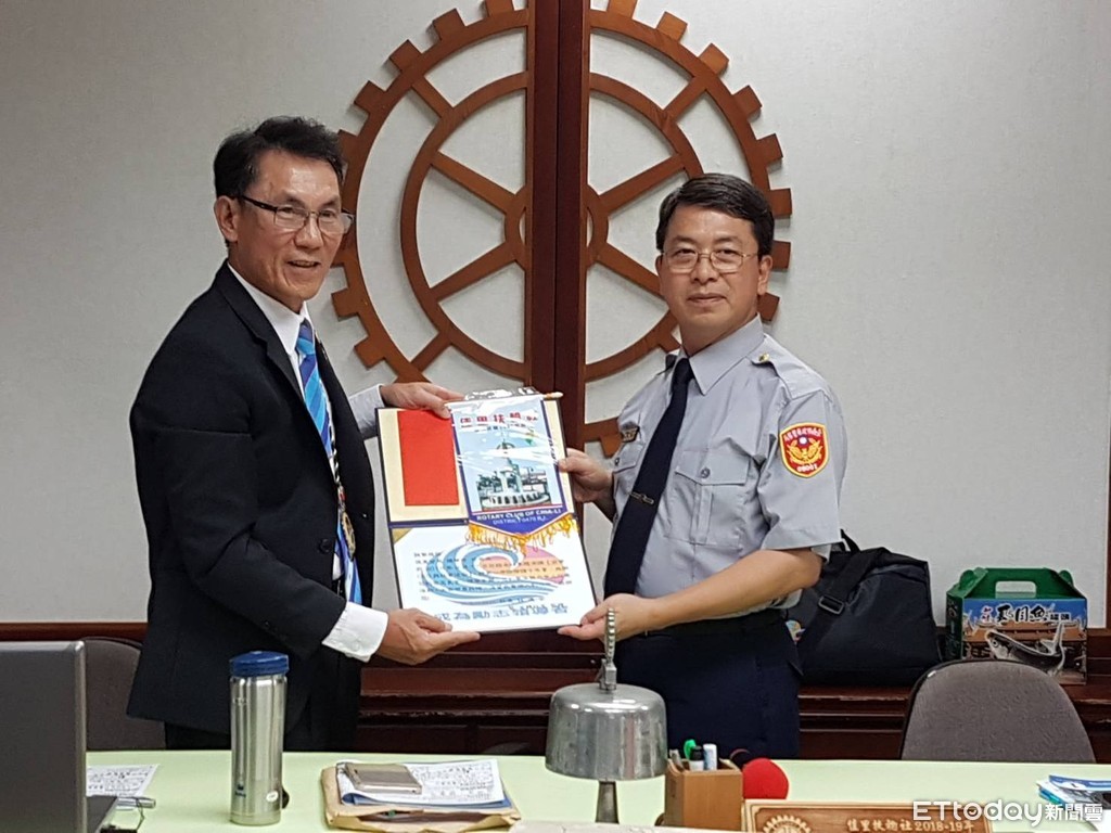 ▲佳里國際扶輪社長林進安代表全體社員頒發感謝狀,讚賞楊華中分局長精彩的演講。(圖/警方提供)