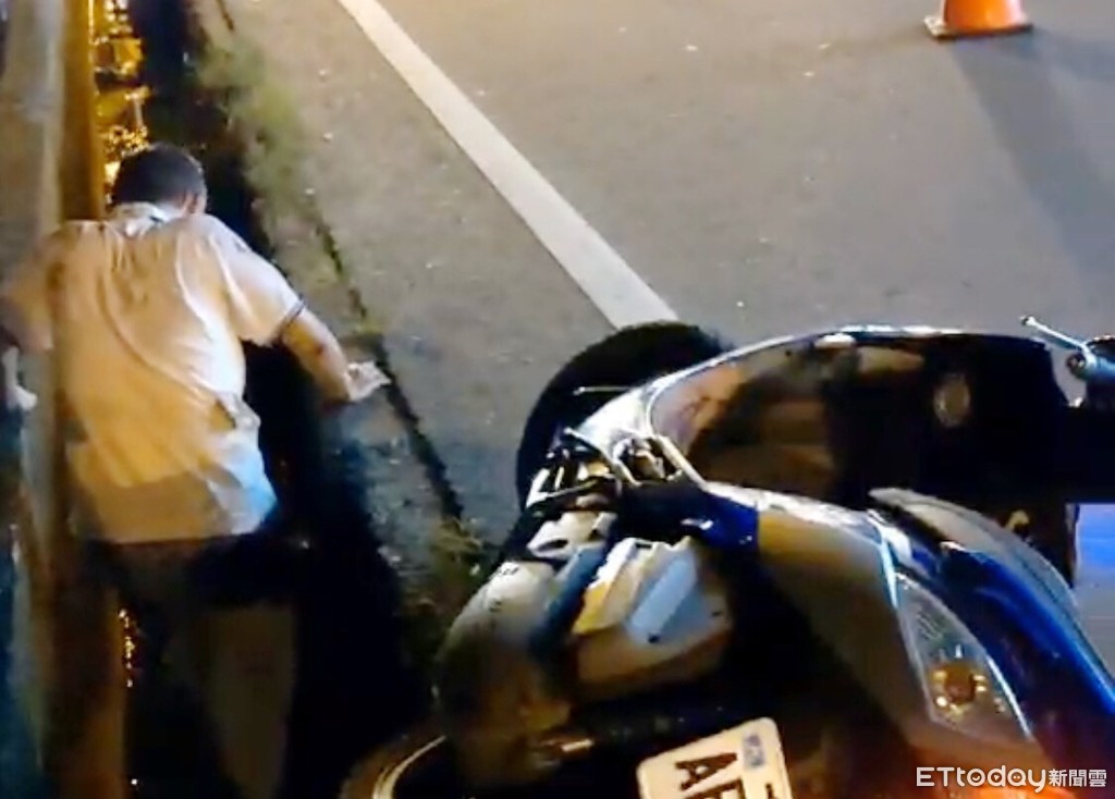 一名住在附近的徐姓男子,正好要到事發地點對面加油站加油,見狀後即刻到對車道了解狀況,一旁的加油員工也拿出三角錐做安全防護;善心徐男直問;「你有沒有怎麼樣?」,跌落水溝的男子嚇得不發一語,徐男見狀後即刻報案。
