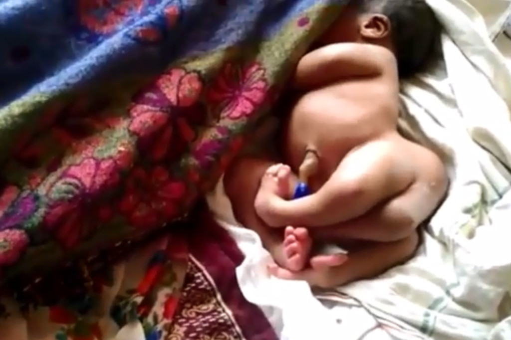 印度北方邦城市戈勒克布爾(Gorakhpur)一名孕婦17日產下了外型相當不同的男嬰,上半身與一般的嬰兒沒有兩樣,但是下半身卻有4條腿,以及2條陽具,畫面曝光引起許多民眾讚嘆,直呼這名男嬰是「神的奇蹟」(miracle of God)。