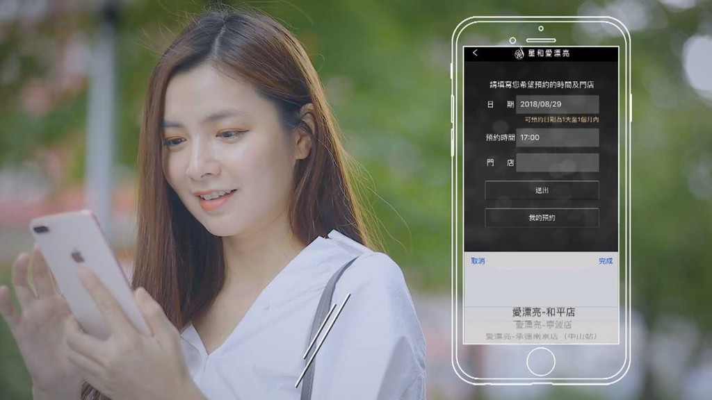 ▲新零售商業模式爆發,用戶透過APP軟體,即可24小時進行美容課程線上預約並諮詢。(朵利安創意提供,下同)
