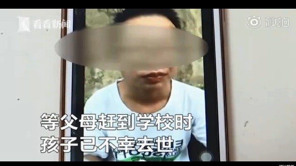 安徽黃山市徽州區日前一名王姓高二學生在校跳樓自殺身亡,生前還致電給母親,要父母生個孩子替自己盡孝;據了解,他在跳樓前於開學典禮上微笑,被老師當眾甩了3巴掌。目前,涉事教師已停職接受調查。