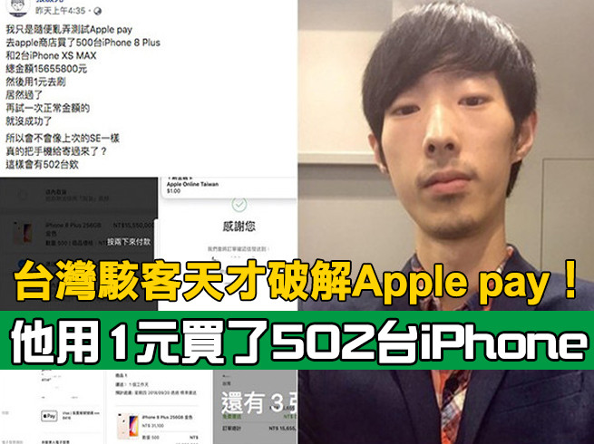 有「台灣駭客天才」之稱的張啟元,這次竟然破解了Apple pay,他利用Apple pay訂購502台iPhone,總金額是1565萬5800元,但他只用1元就付款成功。