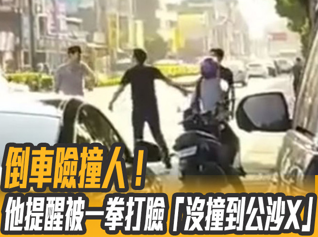 ▲倒車差點撞到人,男子不滿被提醒動手痛毆騎士,嗆「沒撞到公沙小」。(圖/翻攝自爆料公社)