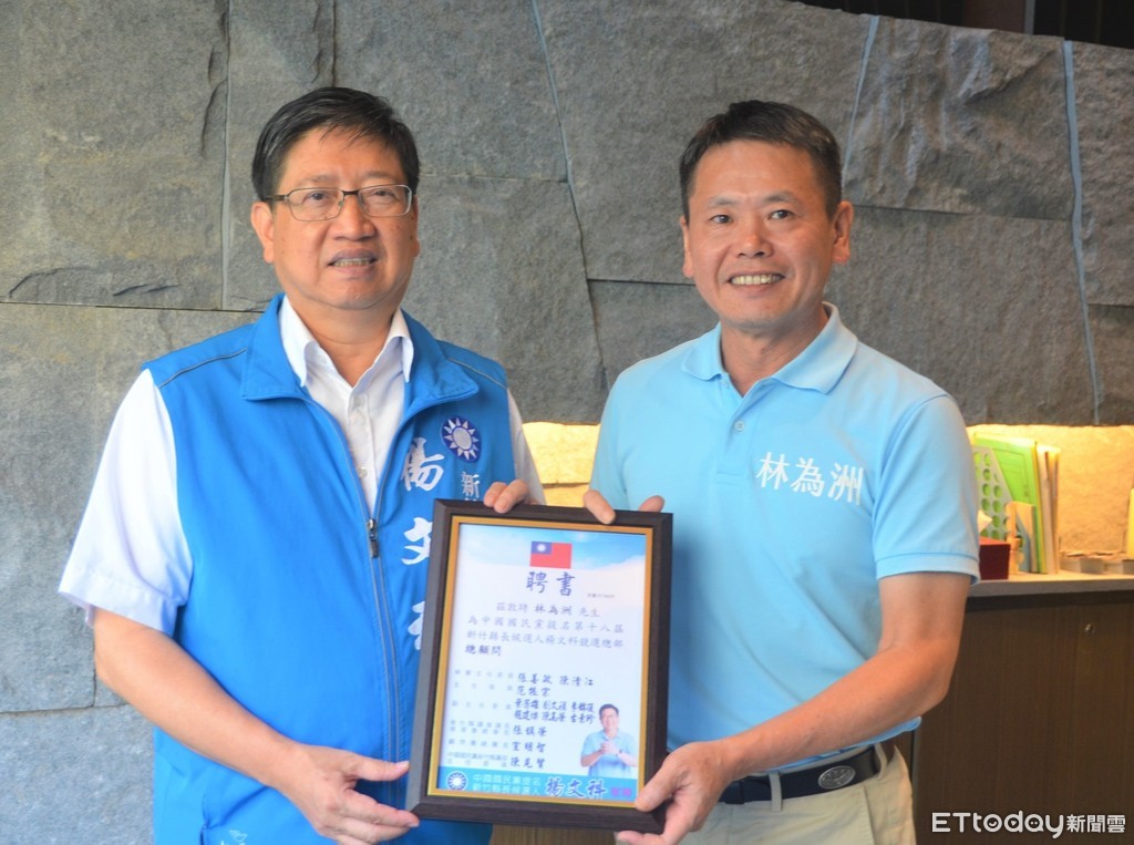 ▲立法委員林為洲18日為才宣布出任許明財競選總部的總督導,19日再宣布擔任新竹縣長參選人楊文科競選總部總顧問。(圖/記者陳凱力翻攝)