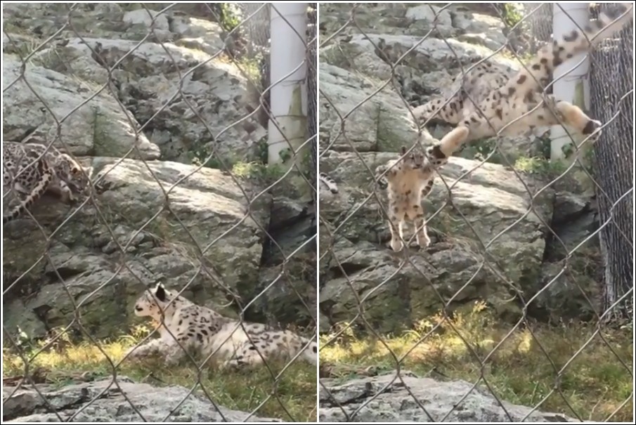 常在Instagram上分享大自然動物和生活樂趣的加爾薩(Gabriel Garza)先前至美國麻州石頭動物園(Stone Zoo)遊玩時,意外拍下這個畫面。透過影片可以看到,可愛的小雪豹原先只是在崖壁上觀察媽媽,接著興奮地跳下來,想找媽媽玩。